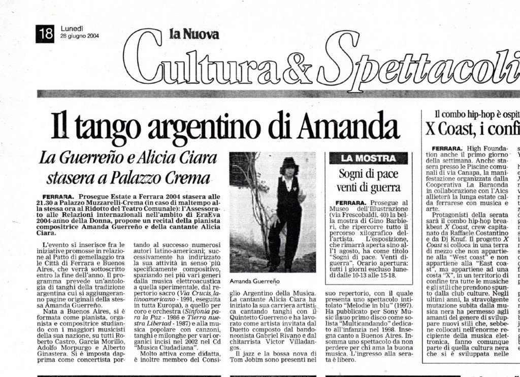 La Nuova – Cultura & Spettacoli – Junio-2004